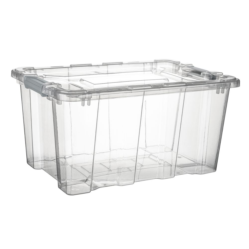 Possui travas para a tampa e acabamento premium cristal, para saber o que há dentro.