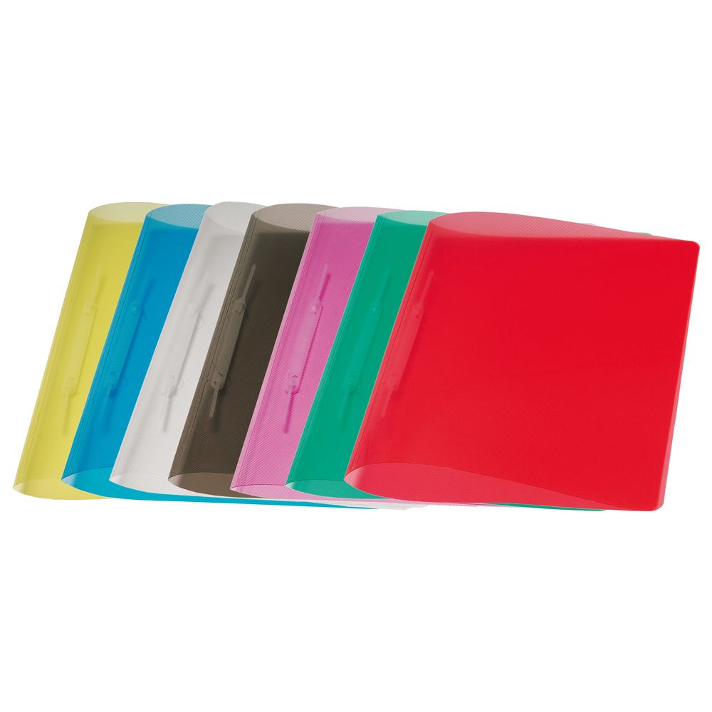 Pasta dobrada laminada em polipropileno no tamanho ofício. Acompanha grampo plástico. Ideal para uso escolar.
