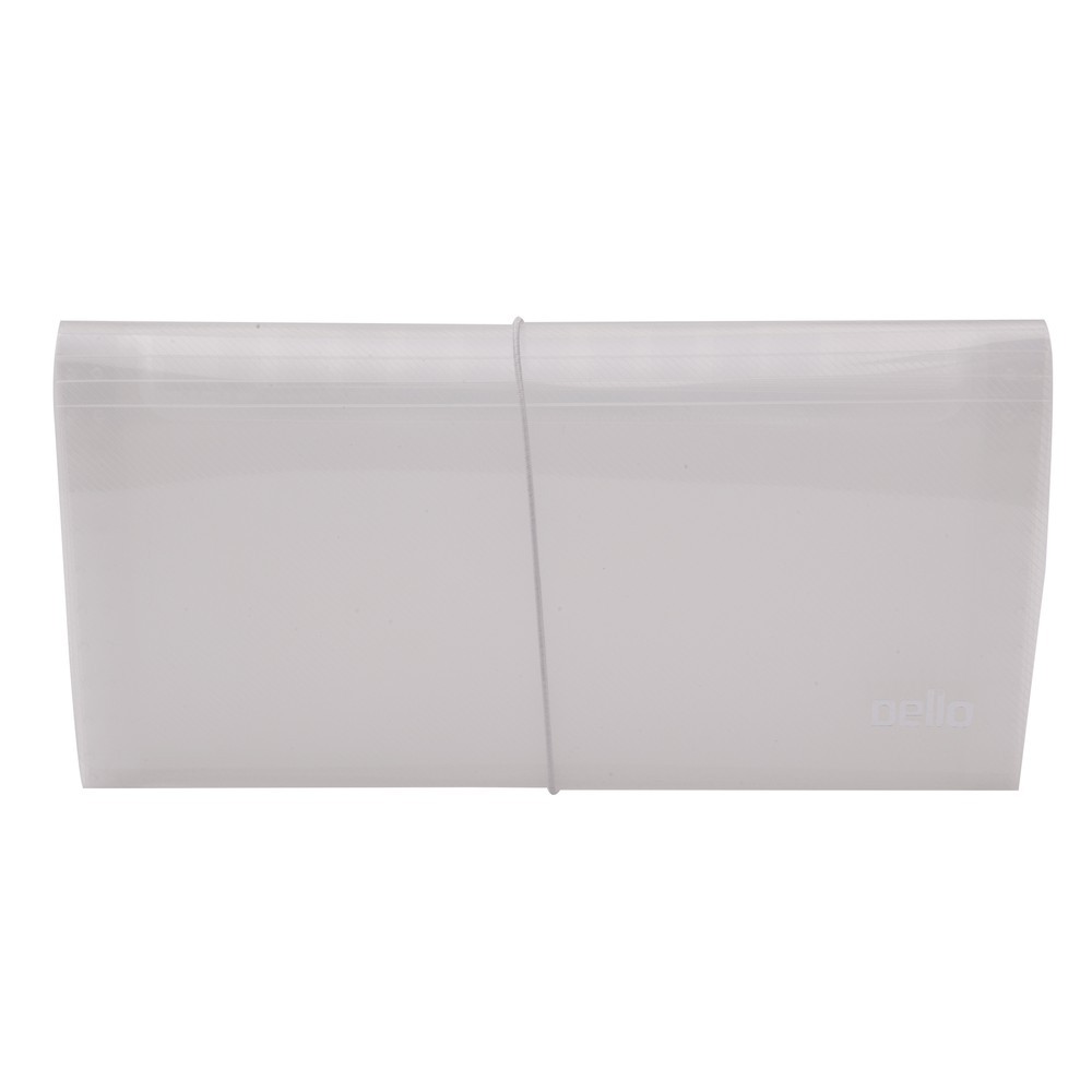 Pasta sanfonada laminada em polipropileno. Acompanha visores e etiquetas para identificação das divisórias. Fechamento com elástico.