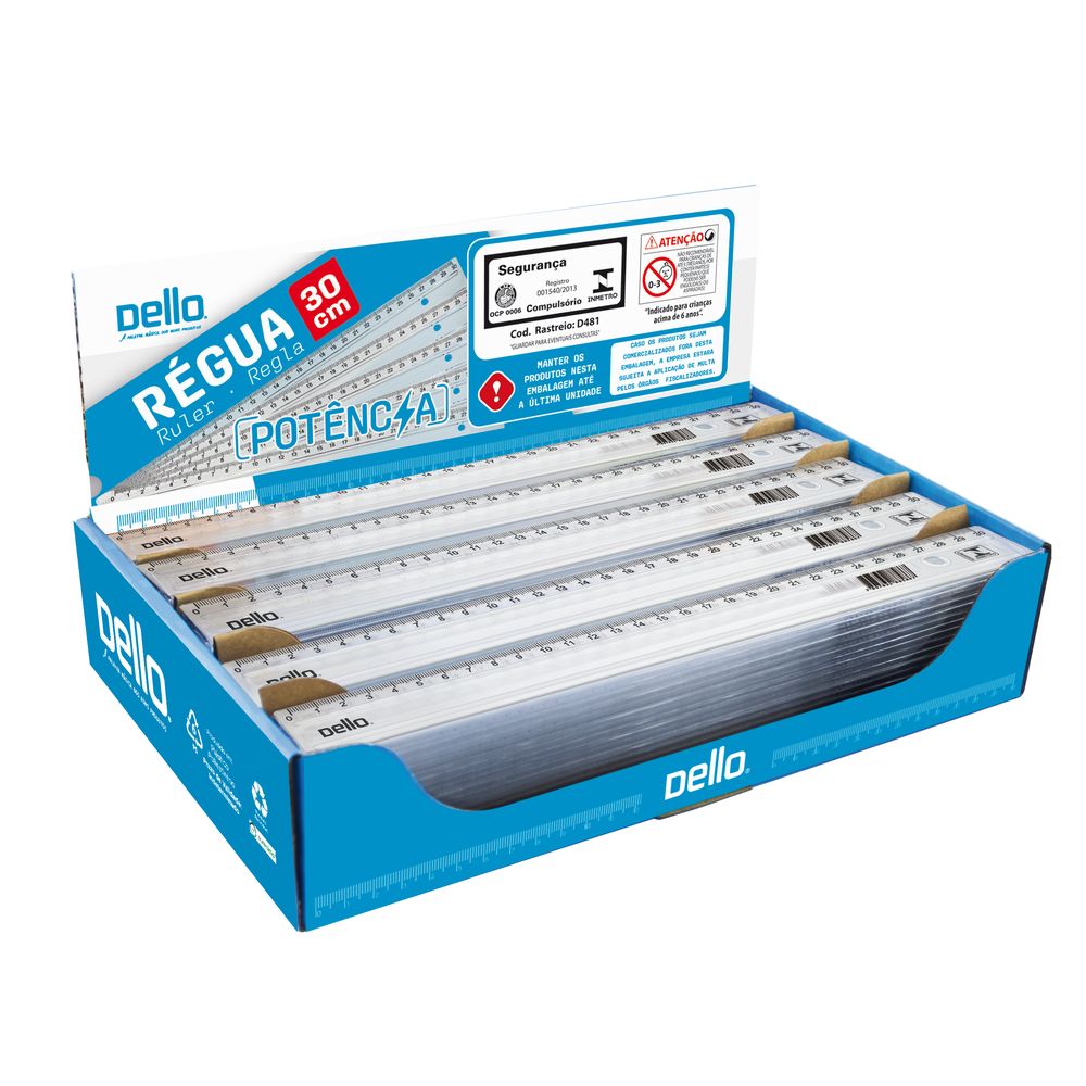 Caixa display com réguas de 30cm injetada em poliestireno, super resistente.