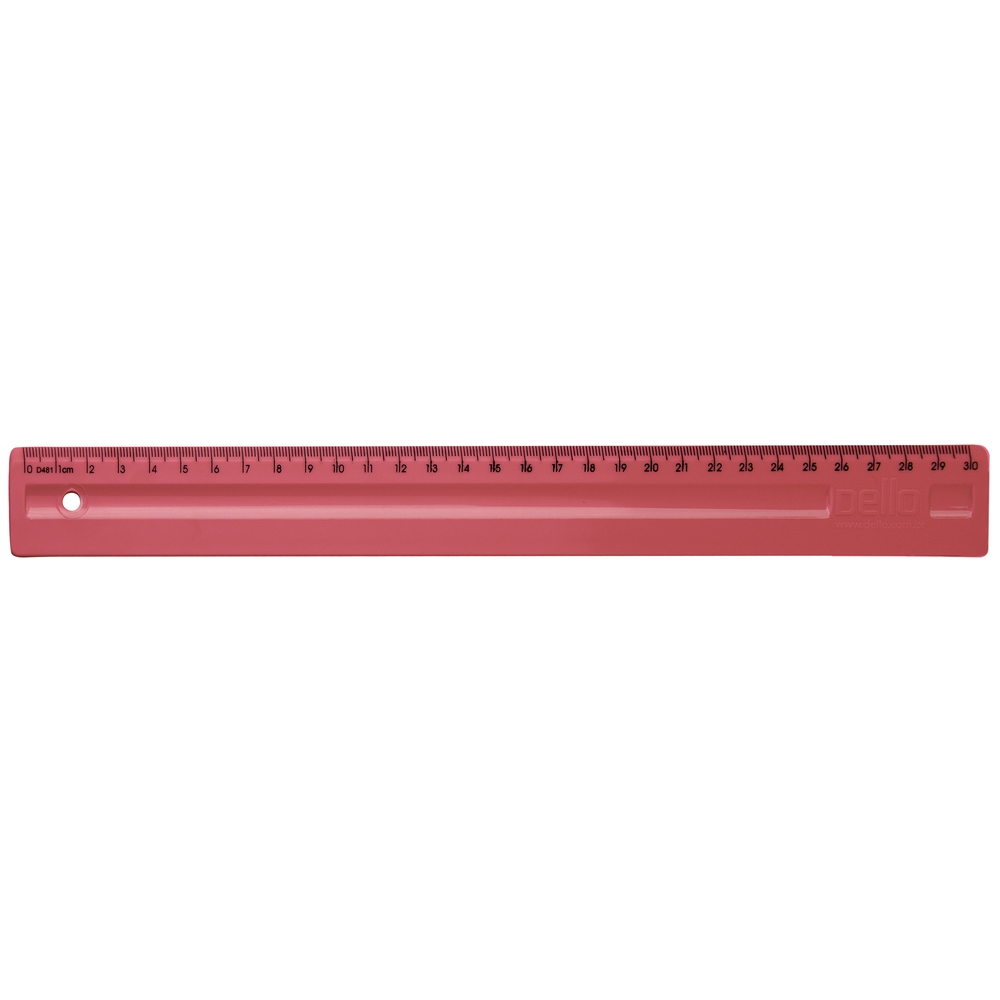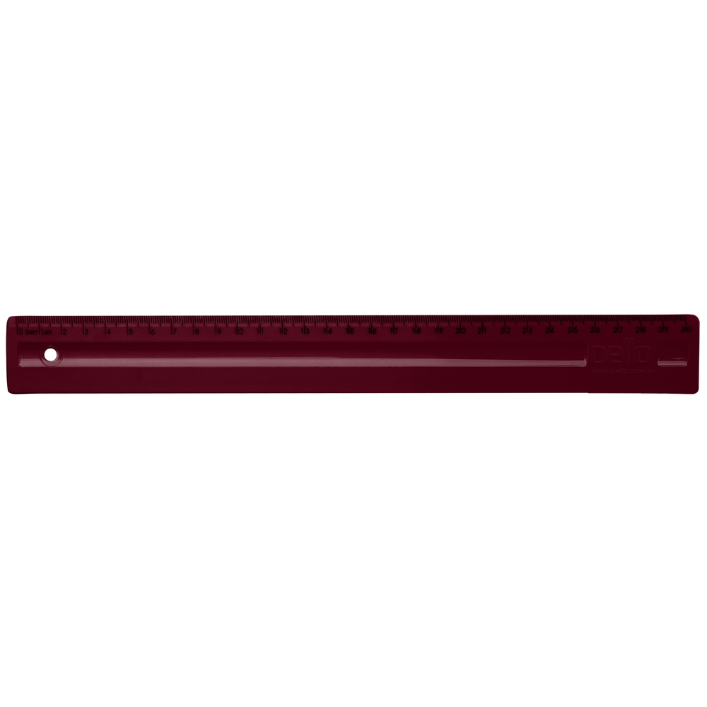 A Régua de 30cm é injetada em poliestireno e não possui aroma, porém possui cor especial para  combinar com os temas Aromas, Cherry, Morango, Jasmim, Brigadeiro e Preto; formando um conjunto completo.